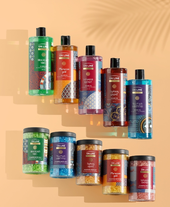 ON LINE Senses to linia żeli pod prysznic i pieniących soli do kąpieli, które zamieniają codzienną pielęgnację w aromatyczną podróż po świecie.